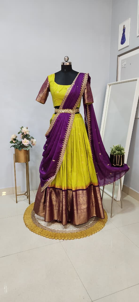 Lehanga Waist Size: 34-36 inches with adjustable drawstring fastening with zipper.