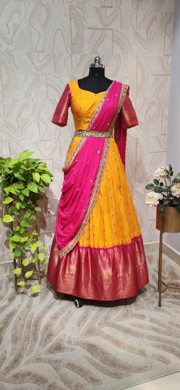 Lehanga Waist Size: 34-36 inches with adjustable drawstring fastening with zipper.