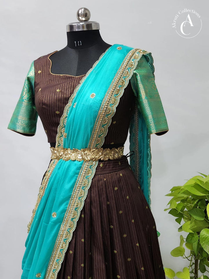 Lehanga Waist Size: 34-36 inches with adjustable drawstring fastening with zipper.