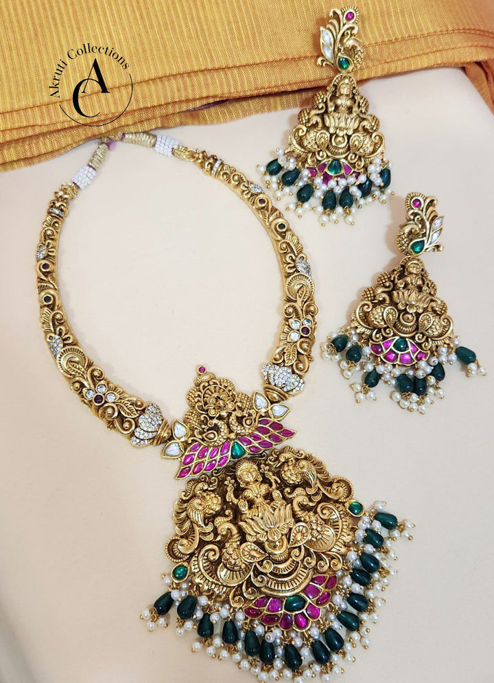 Material: 1 gram antique matte gold plating, Kundans,Kemp Stones.