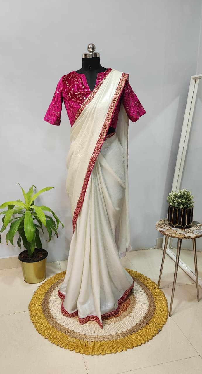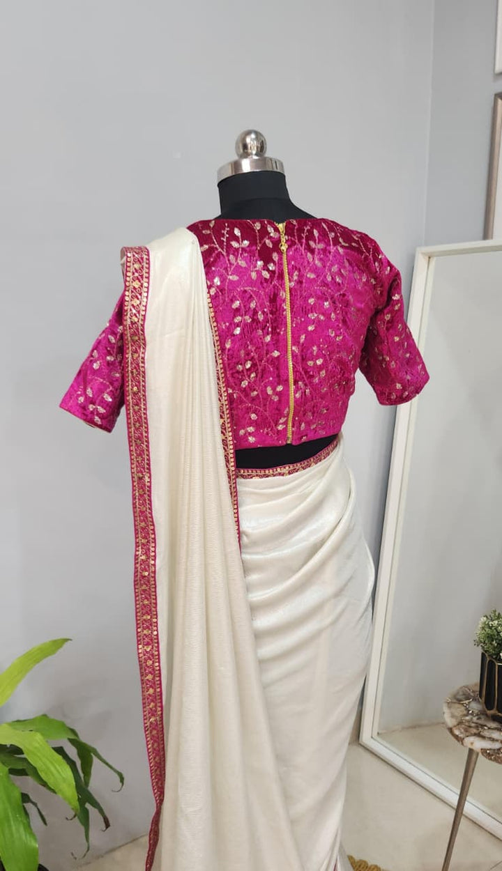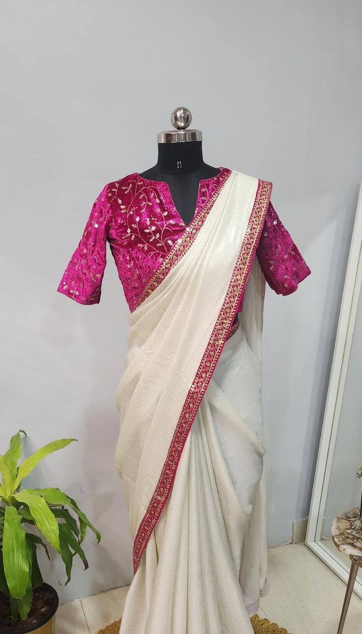Material – Shimmer Georgette Saree, Blouse - Velvet Blouse.