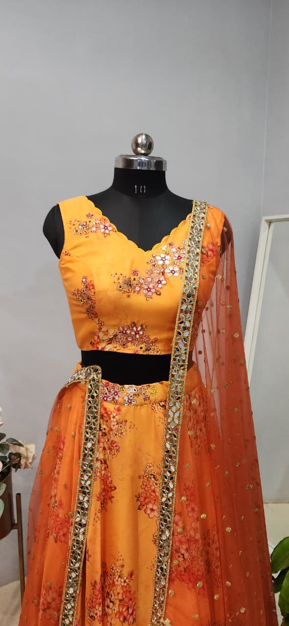 Lehanga Waist: 30 for size 34, 32 for size 36, 34 for size 38, 36 for size 40, 38 for size 42 or Can be customized according to your requirements.